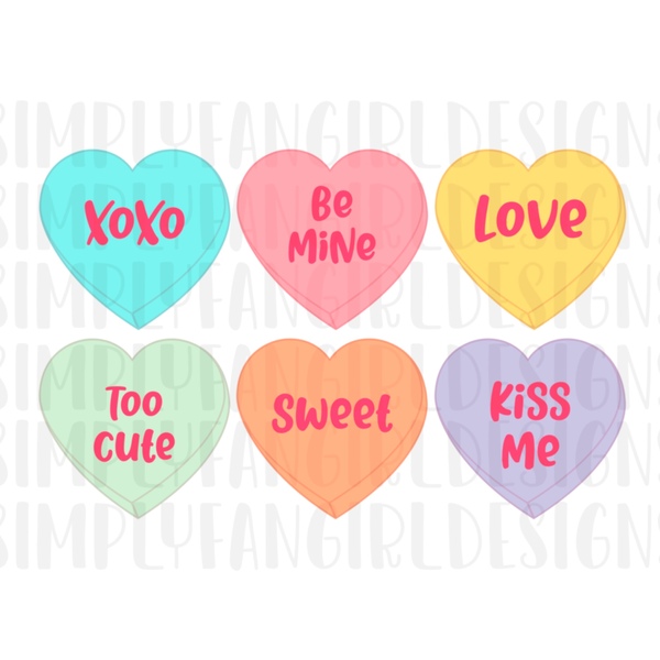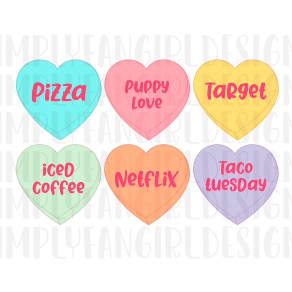 Candy Heart Sayings Sublimation PNG